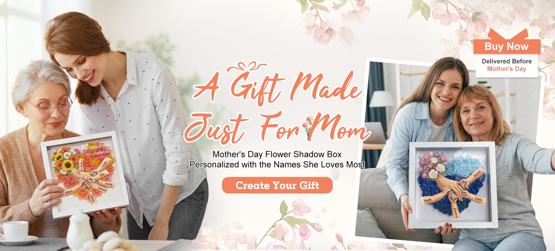 Personalized Mom Holding Hands Shadow Box-Mother's Day Flower Frame