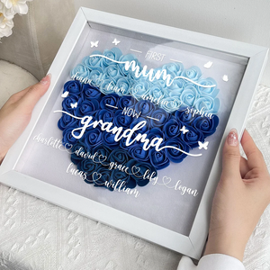 Custom Personalized First Mom Now Grandma Flower Shadow Box, Shadowbox Heart Mom Frame Gift | Mother’s Day gift