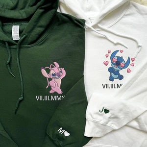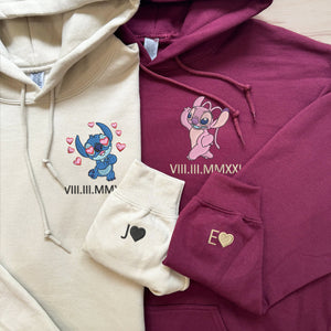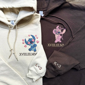 Custom Embroidered Roman Numeral Date Hoodies For Couples, Cute Stitch Couples Embroidered Hoodie