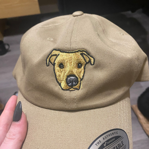 • Custom Embroidery: Upload a photo of your dog, and we'll turn it into a detailed, high-quality embroidered portrait on the front of the hat. It's a one-of-a-kind accessory that’s sure to get compliments!