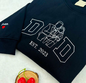 Custom Outline Portrait Photo Dad Embroidered Sweatshirt | Father's Day Gift