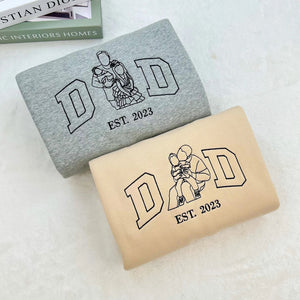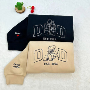 💗Custom Portrait from Photo Sweatshirt Embroidered Dad Sweatshirt With Kids Names On Sleeve Personalized Father and Son Hoodie Gift For Dad