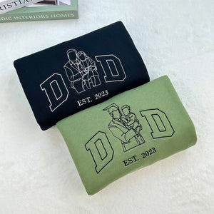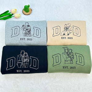 Startseite Custom Outline Portrait Photo Dad Embroidered Sweatshirt | Father's Day Gift