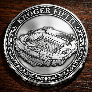 This stadium commemorative coin features a pointillist art design of Kroger Field. It's an ideal gift for loyal Jones Kroger Field Medallion football fans and a great addition to any memorabilia collection.