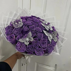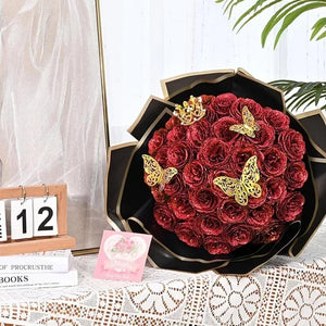 Glittering Roses: Our premium roses are adorned with a delicate layer of glitter, adding a touch of magic to each petal. The subtle shimmer creates an ethereal effect, making this bouquet a truly unique and unforgettable gift.