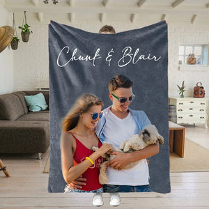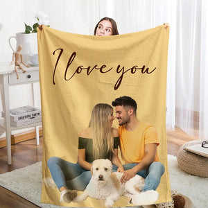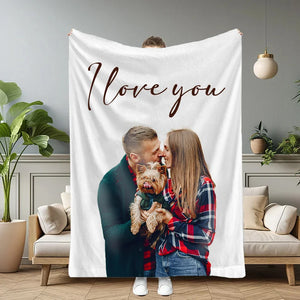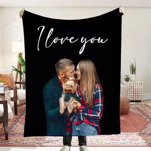 Personalized Photo Blanket with Text, Custom Pet Photo Blanket For Family Couple