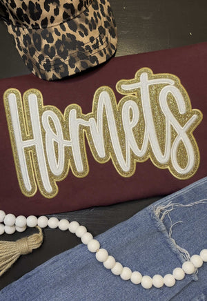Custom Double Stack Glitter Embroidered Team Sweatshirt Hoodie T-shirt, Sports Mom Tshirt