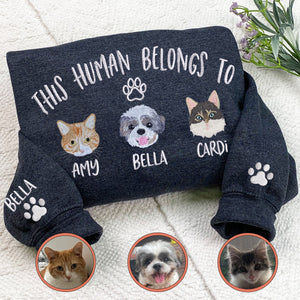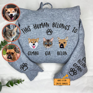 Custom Full-Color This Human Belongs To Embroidered Hoodie | Gift For Pet Lovers