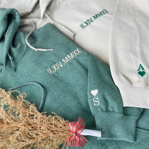 Custom Personalized Embroidered Roman Numeral Couple Hoodie, Gift for Boyfriend