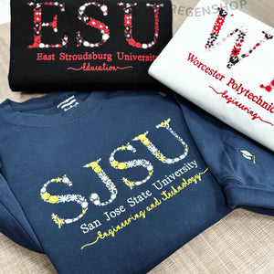 Custom College University Floral Letter Embroidered Sweatshirt | Graduation Gift For Friend
