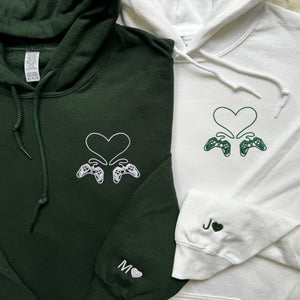 Custom Embroidered Gamer Controller Love Matching Hoodies for Couples | Couple Anniversary Gift