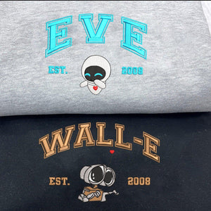 Custom Wall E and Eve Couples Vintage Y2K Embroidered Sweatshirts For Couples, Custom Matching Couple Hoodies