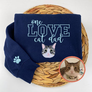 Custom One Love Cat Dad Embroidered Hoodie | Gift For Pet Lovers