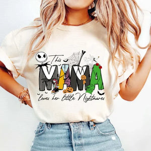 👻 Each sweatshirt features the phrase "This Mama loves her little Nightmares" with unique Halloween-themed letters and your choice of adorable spooky characters (inspired by Nightmare Before Christmas style). You can personalize it with up to 6 names, making it a perfect gift from kids or grandkids.