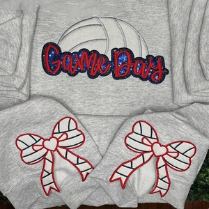 Personalized Volleyball Game Day Sweatshirt with Side Bows Volleyball Coquette Bows Embroidered Sweatshirt