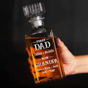 Raising Kids, Raising Glasses - Family Personalized Custom Glass Whiskey Bottle - Father's Day, Gift For Dad, Grandpa