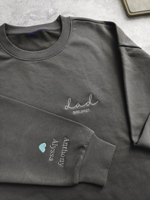 Custom Dad Embroidered Sweatshirt With Kids Names and Year For Father's Day