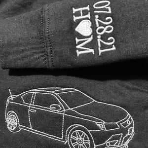 Custom Embroidered Car Hoodie, Sweatshirt with Car Photo | Car Enthusiast Gift