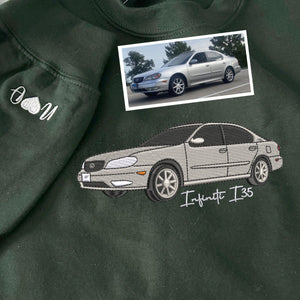 Custom Embroidered Car Sweatshirt From Your Photo - Personalized Car Hoodie For Husband - Car Portrait Shirt -Classic Car Gift For Boyfriend