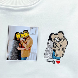 These exquisitely personalized shirts will make your day a little extraordinary and meaningful. Crafted with meticulous attention to detail, our sweatshirts feature high-quality embroidery techniques that bring your favorite memories to life. Whether it's a cherished family portrait, a beloved pet, or a breathtaking landscape, we transform your chosen photo into a stunning embroidered masterpiece.