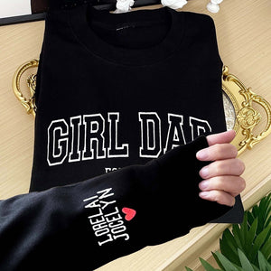 Custom Girl Dad Embroidered Sweatshirt Hoodie With Kids Names On the Sleeve For Father's Day