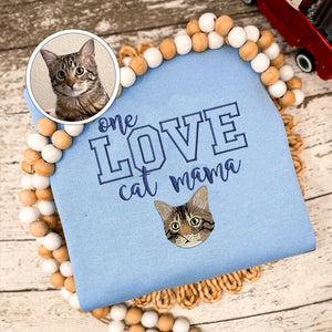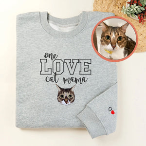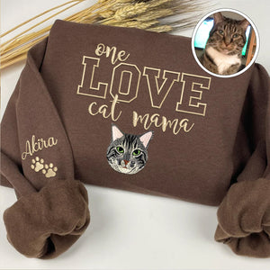 Custom One Love Cat Mama Embroidered Sweatshirt – Personalized Cat Lover Shirt | Gift For Pet Lovers