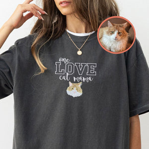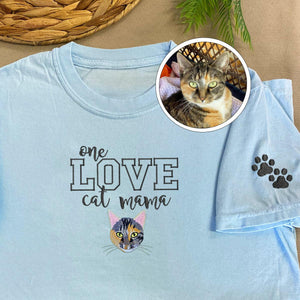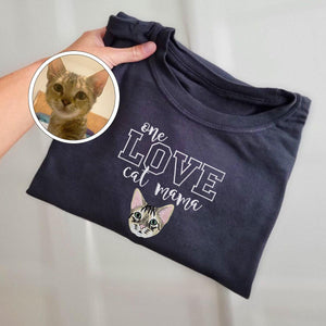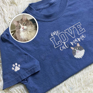 Custom One Love Cat Mama Embroidered T-Shirt | Gift For Pet Lovers