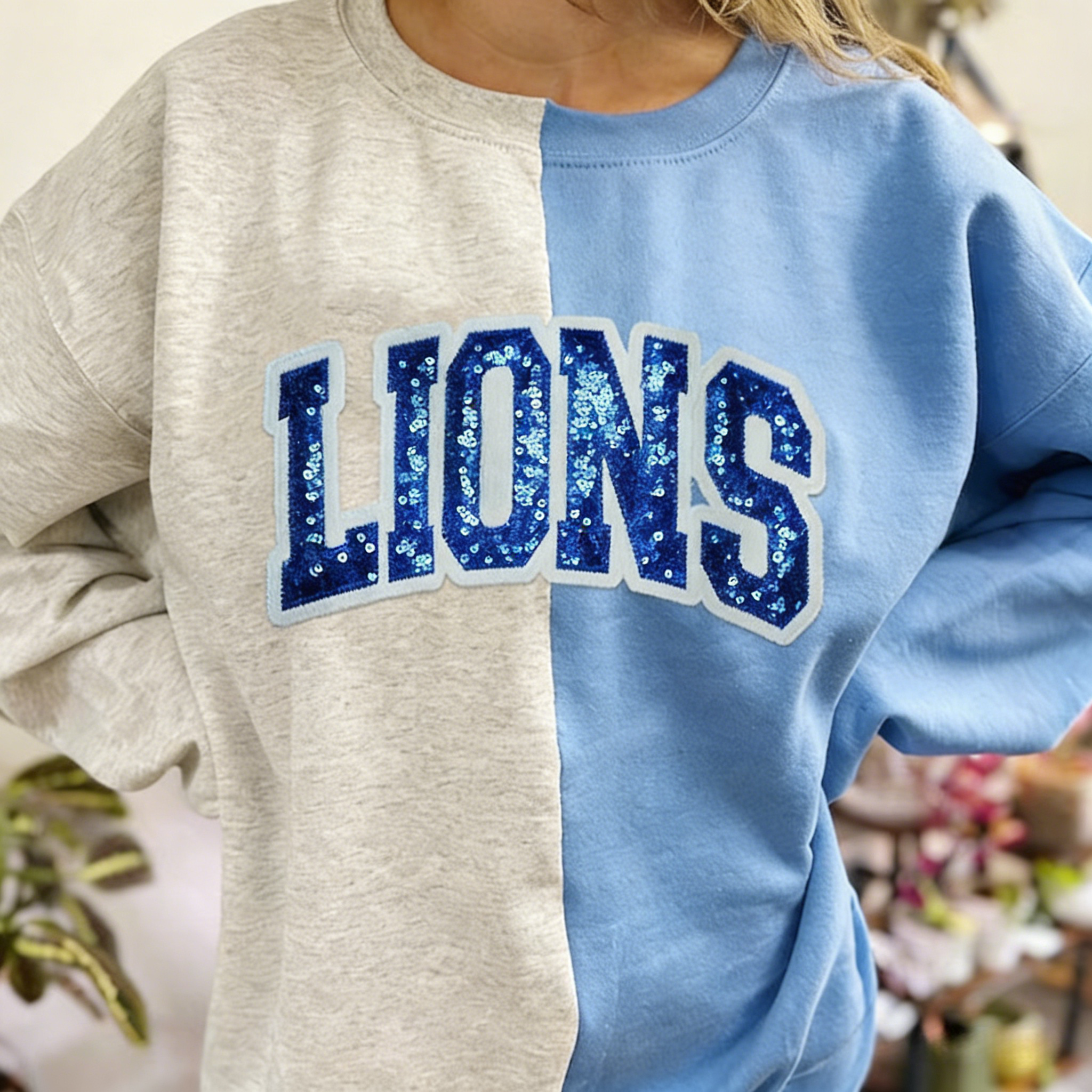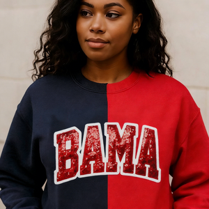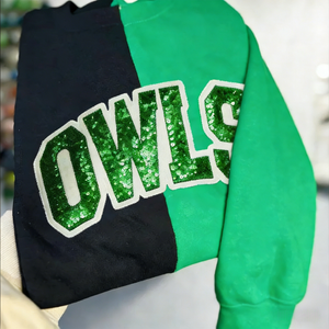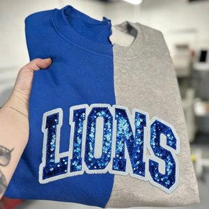 Personalized School Team Sequins Appliqué Embroidered Sweatshirt Two Tone Split Crewneck