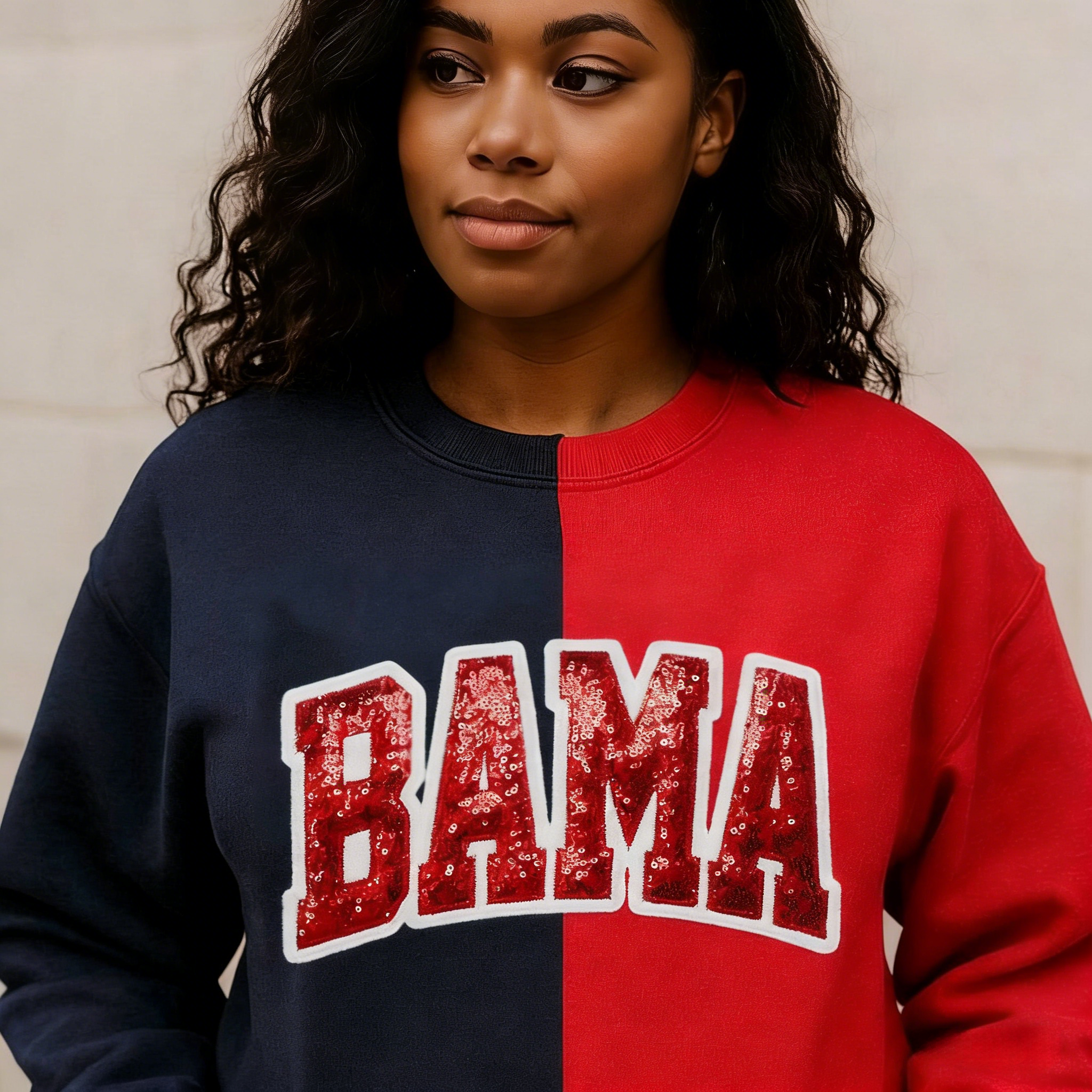 Accueil Personalized School Team Sequins Appliqué Embroidered Sweatshirt Two Tone Split Crewneck
