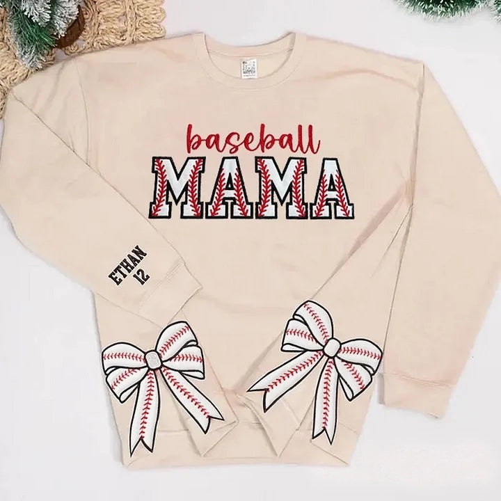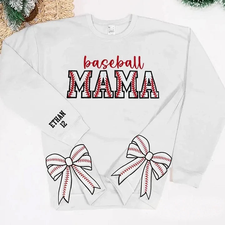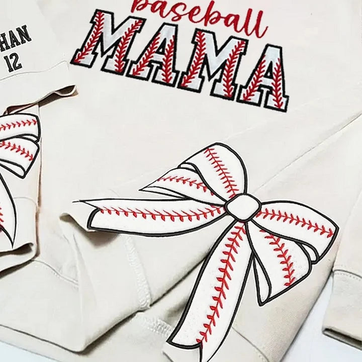 Baseball MAMA with Side Bow Apparel Embroidery T-shirt Sweatshirt Hoodie