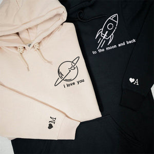 Custom Embroidered I Love You To The Moon And Back Matching Hoodies for Couples