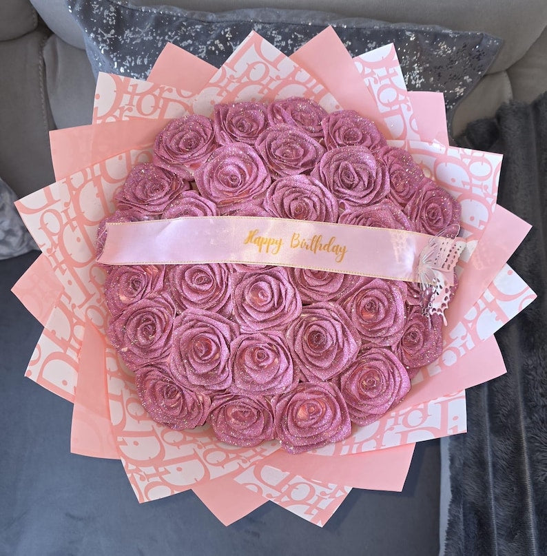 💕Glitter Pink Rose Bouquet💕 - An Ideal Expression of Love(Ships Within 24 Hours - Buy More Save More) | Valentines Flower Couple Anniversary Gift