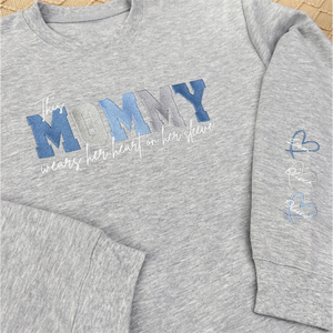 Wear Your Heart on Your Sleeve – Embroidered Mama Sweatshirt with Kids’ Names | for Mom and Grandma Christmas Gift