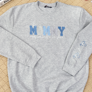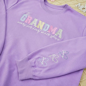 Give Mom or Grandma a heartfelt gift she'll cherish forever! This beautifully embroidered sweatshirt features her loved ones' names on the sleeve, symbolizing the warmth and love she carries every day. 💕