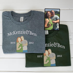 Custom Embroidered Matching Couple Hoodies with Portrait | Valentine's Day Couple Gifts | 1st Year Anniversary Gift For Her