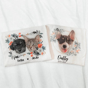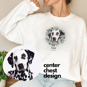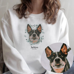 Personalized Custom Pet Dog Face Portrait Floral Wreath T-shirt Sweatshirt Hoodie For Pet Lovers