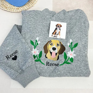 Custom Embroidered Sweatshirt With Pet Portrait Flower | for Pet Lover