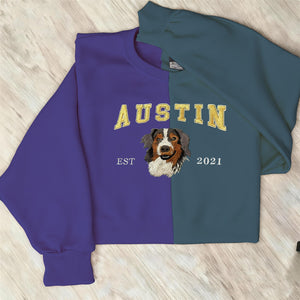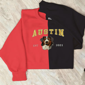Custom Embroidered Pet Portrait Two Tone Sweatshirt with Pet Name