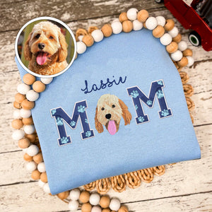 Custom Full-Color Dog Mom With Name Embroidered Sweatshirt | Gift For Pet Lovers