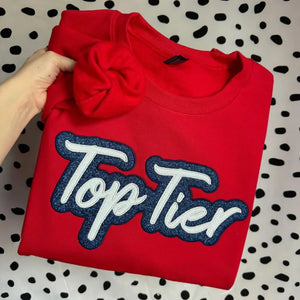 Celebrate your love for the game and your favorite athlete with our School Team Glitter Embroidered Sweatshirt! This cozy and stylish sweatshirt features beautiful glitter embroidery that sparkles with every move, along with adorable glitter embroidered bows for a unique, feminine touch. Whether you're cheering from the sidelines, attending a tournament, or running errands, this sweatshirt keeps you comfortable while show off your team pride in the cutest way.