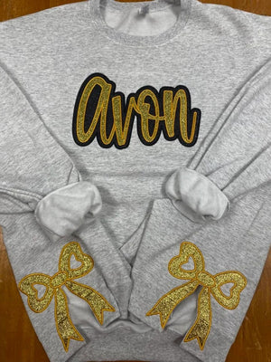 Custom Glitter School Team Mascot Embroidered Sweatshirt With Side Bow
