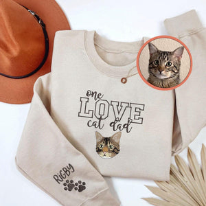 Custom One Love Cat Dad Embroidered Sweatshirt | Gift For Pet Lovers