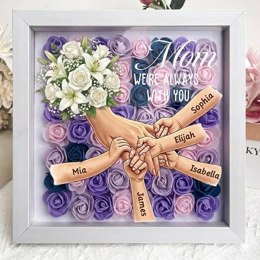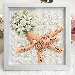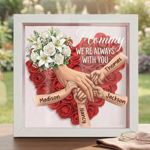 "We're Always With You"-White Lily & White Rose-Personalized Mom Holding Hands Memorial Shadow Box-Mother's Day Remembrance Frame, In Loving Memory Gift