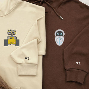 Custom Embroidered Hoodies For Couples, His and Her Matching Couple Hoodies, Cute Cartoon Wall E x Eve Couples Embroidered Hoodie