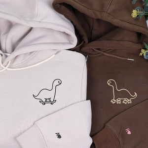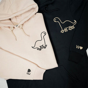 Custom Embroidered Skater Dino Matching Hoodies for Couples | Couple Anniversary Gift