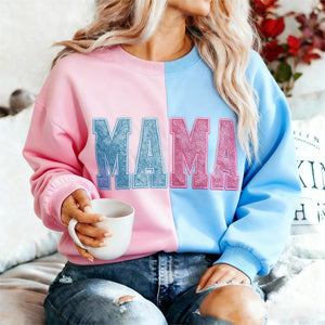 Custom Glitter Two Tone MAMA Embroidered Sweatshirt | Christmas Gifts for Mom | Mother's Day Gifts