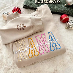 Custom Color Embroidered Nana Sweatshirt and Grandkids | Mother's Day Christmas Gifts for Mom