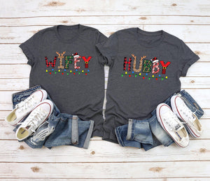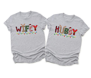 Christmas Hubby And Wifey Shirt, Husband & Wife Shirt, First Christmas Couple Holiday Tee