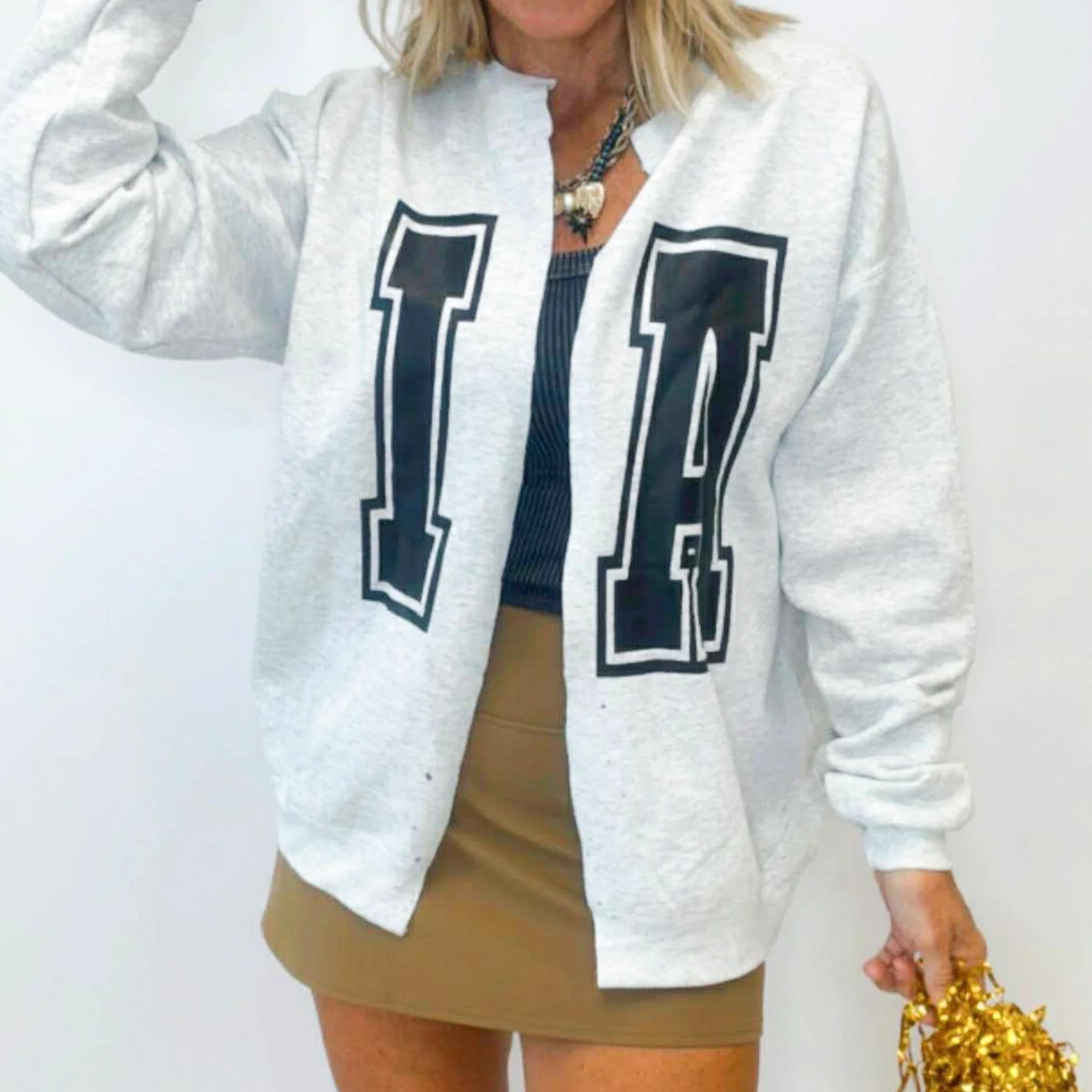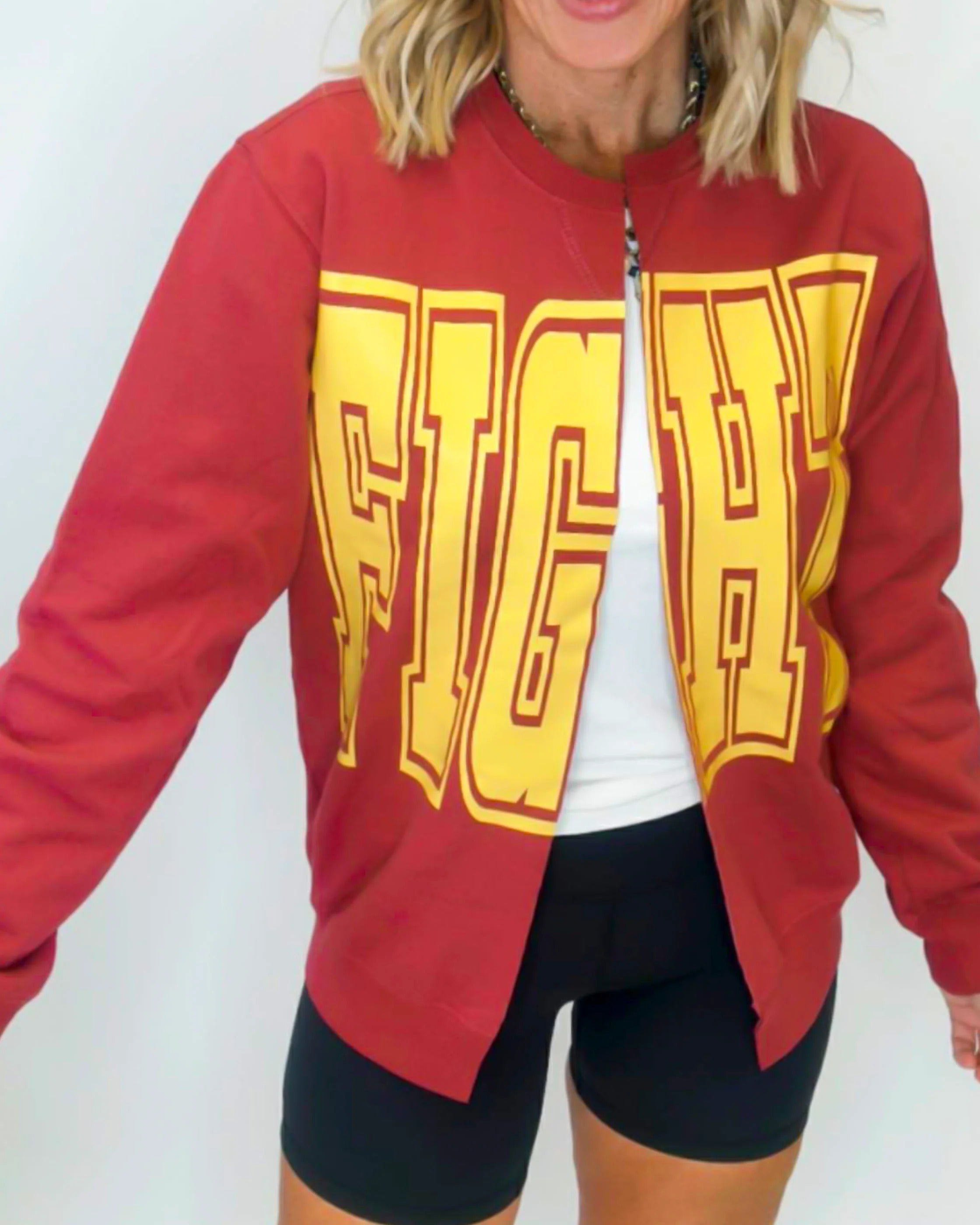 Show your team spirit in cozy style with the #1 Fan Mascot State/School Name/Team Name Game Day Hand Cut Sweatshirt Cardigan. Made from soft fabric, it offers a relaxed fit. The hand-cut design adds a unique, laid-back vibe that’s as comfortable as Fall itself. Whether you're tailgating or relaxing, this cardigan keeps you warm and spirited.