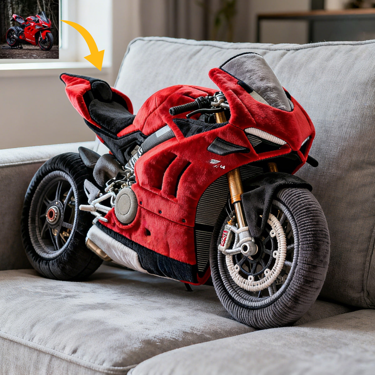 This version gives you complete freedom—upload a full-body reference image or any clear picture, choose any type of vehicle, and we’ll create a fully personalized plush-style pillow just for you.